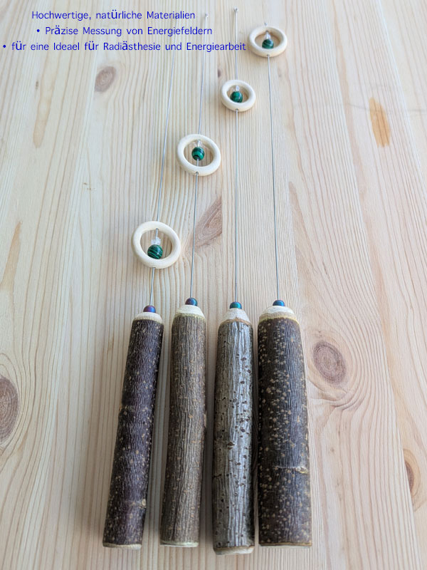 Mittlerweile schon seit ein paar Jahren liefern wir handgefertigte Einhandruten/Tensoren aus eigener Fertigung. Unsere Einhandruten bestehen alle aus Holz und einem Edelstein sind optimal abgestimmt. Egal ob Anfänger oder erfahrener Anwender, mit unseren Einhandruten erzielen Sie von Anfang an gute Ergebnisse. Liegen gut in der Hand, ideal für Rutengänger, Einsteiger oder Fortgeschrittene.
