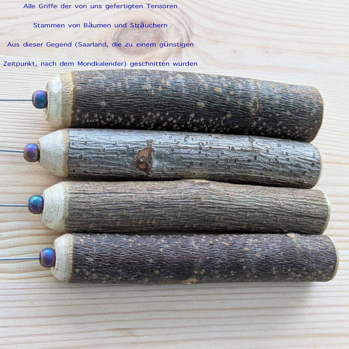 Alle Griffe der von mir hergestellten Tensoren stammen von Bäumen und Sträuchern aus dieser Gegend (Saarland), die zu einem günstigen Zeitpunkt (nach dem Mondkalender) geschnitten wurden